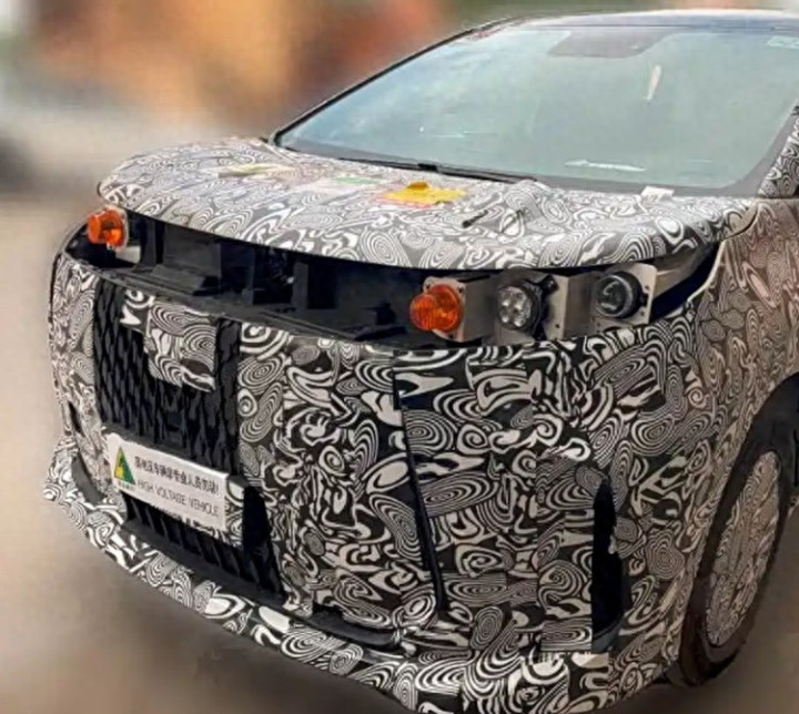 从公布的谍照看,车辆目前还处在早期路试阶段,测试车大量的零配件还没有安装到位,不过目前也能看出新车使用了贯穿式大灯设计。另外测试车采用了大尺寸的中网,并且没有进行封闭处理,疑似是为增程车型保留的进气与散热通道。